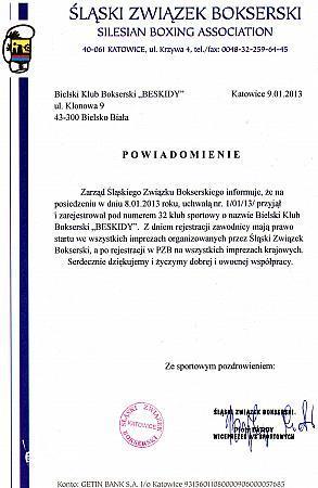 Z dumą ogłaszamy, że nasz Klub Bokserski został zarejestrowany przez Śląski Związek Bokserski. W związku z tym faktem nasi zawodnicy mają prawo startu we wszystkich imprezach organizowanych przez ŚZB.